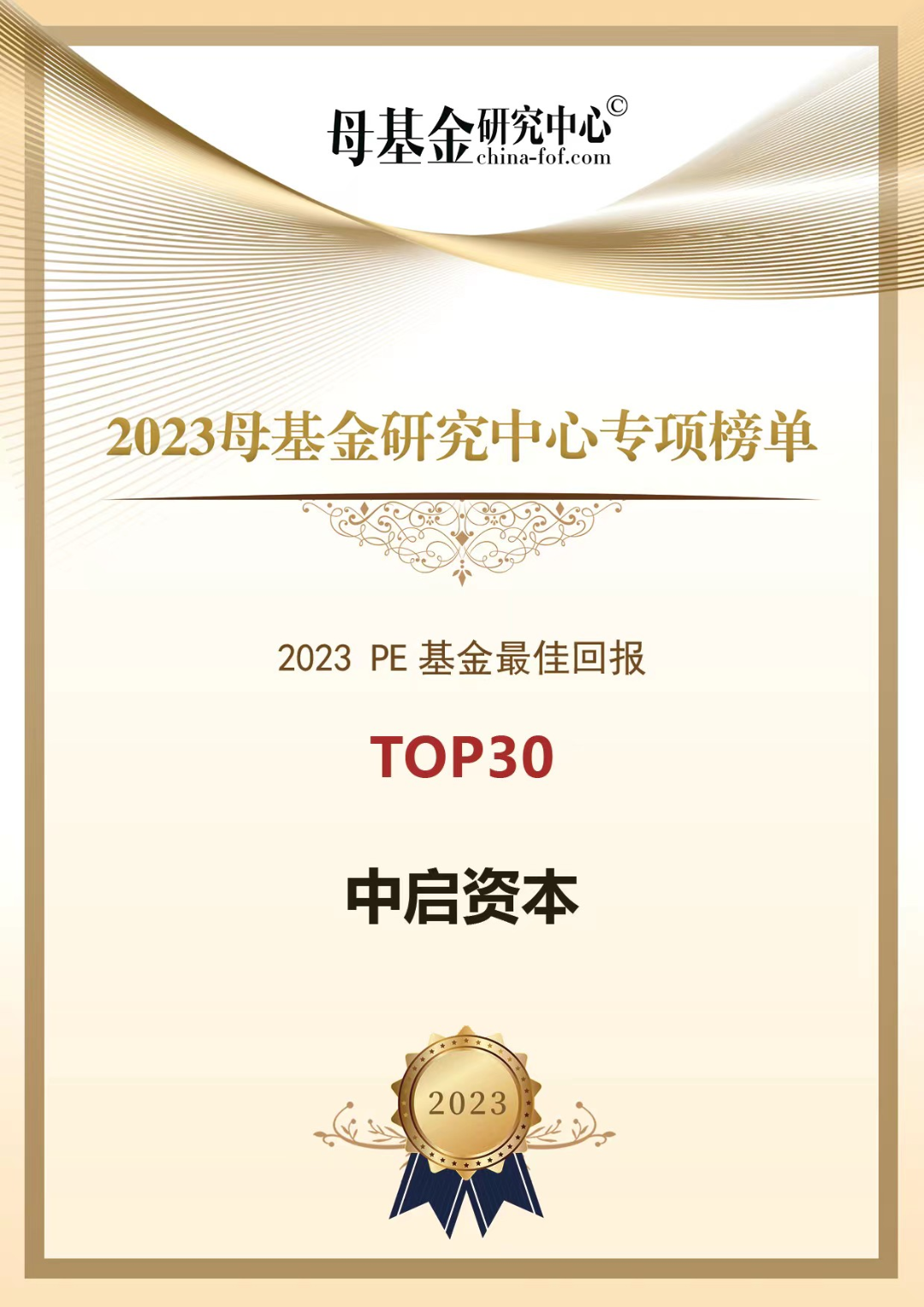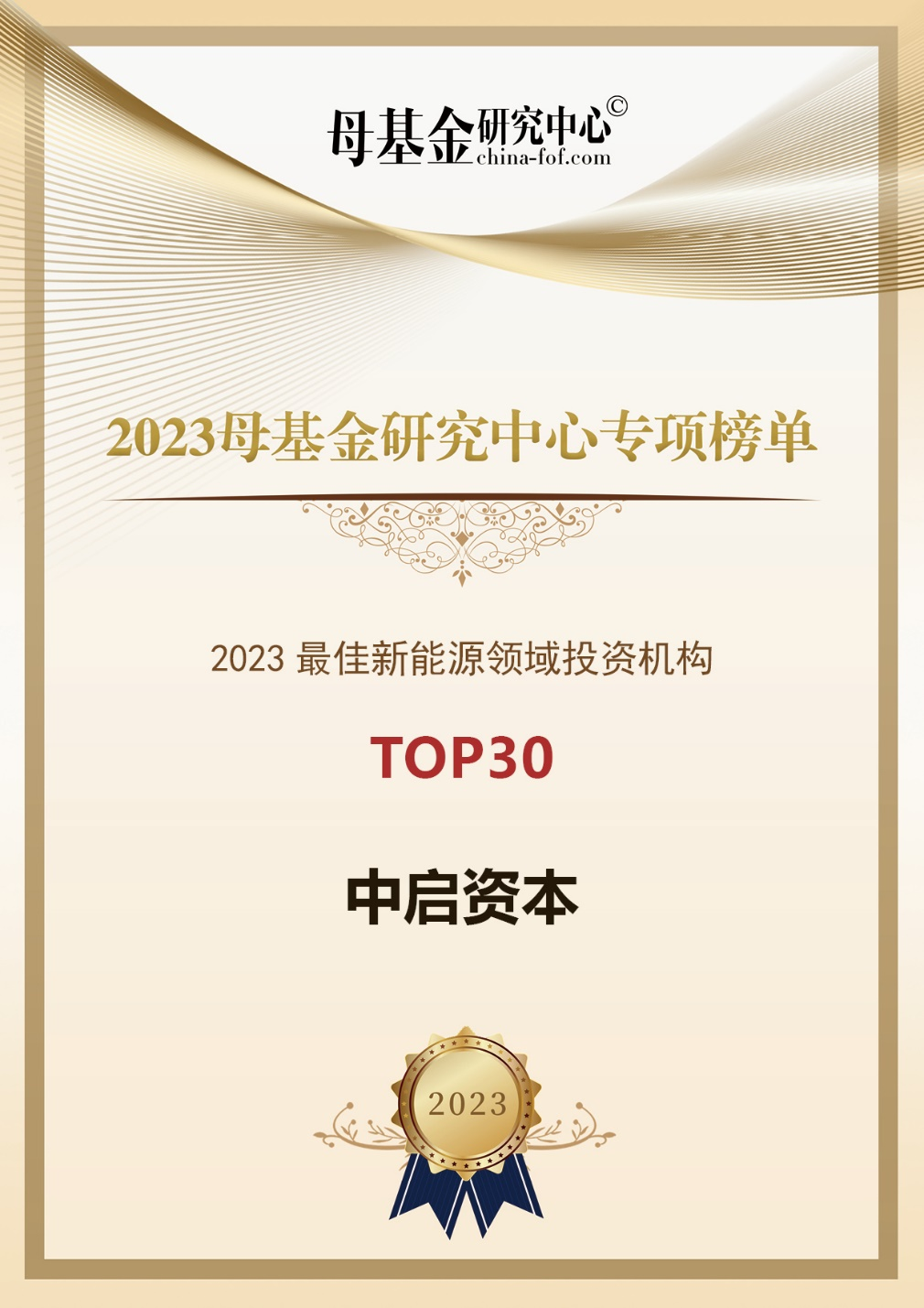 2023年8月7日,母基金研究中心“2023年度专项榜单”隆重揭晓,中启资本凭借多年在新材料、新能源领域的布局以及给投资人带来的长期持续回报,斩获“2023PE基金最佳回报TOP30”及“2023最佳新能源领域投资机构TOP30”两项大奖。