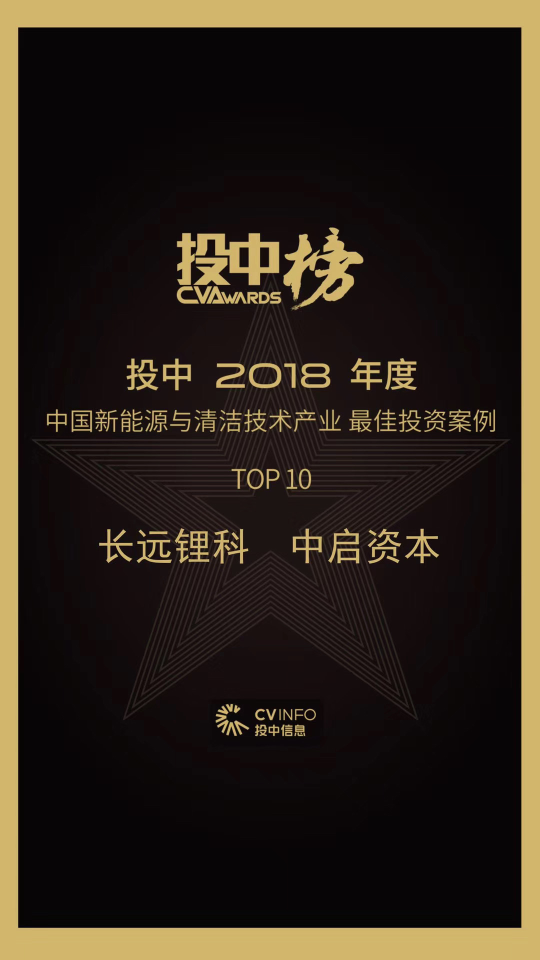 “2018年度中国新锐私募股权投资机构TOP10”榜单旨在评选成立不久、但用实力创造出色业绩的私募股权投资机构,中启资本凭借在投资业绩、回报水平维度的优异表现入选本榜单。中启资本投资的长远锂科项目获评“2018年度中国新能源与清洁技术产业最佳投资案例TOP10”。
